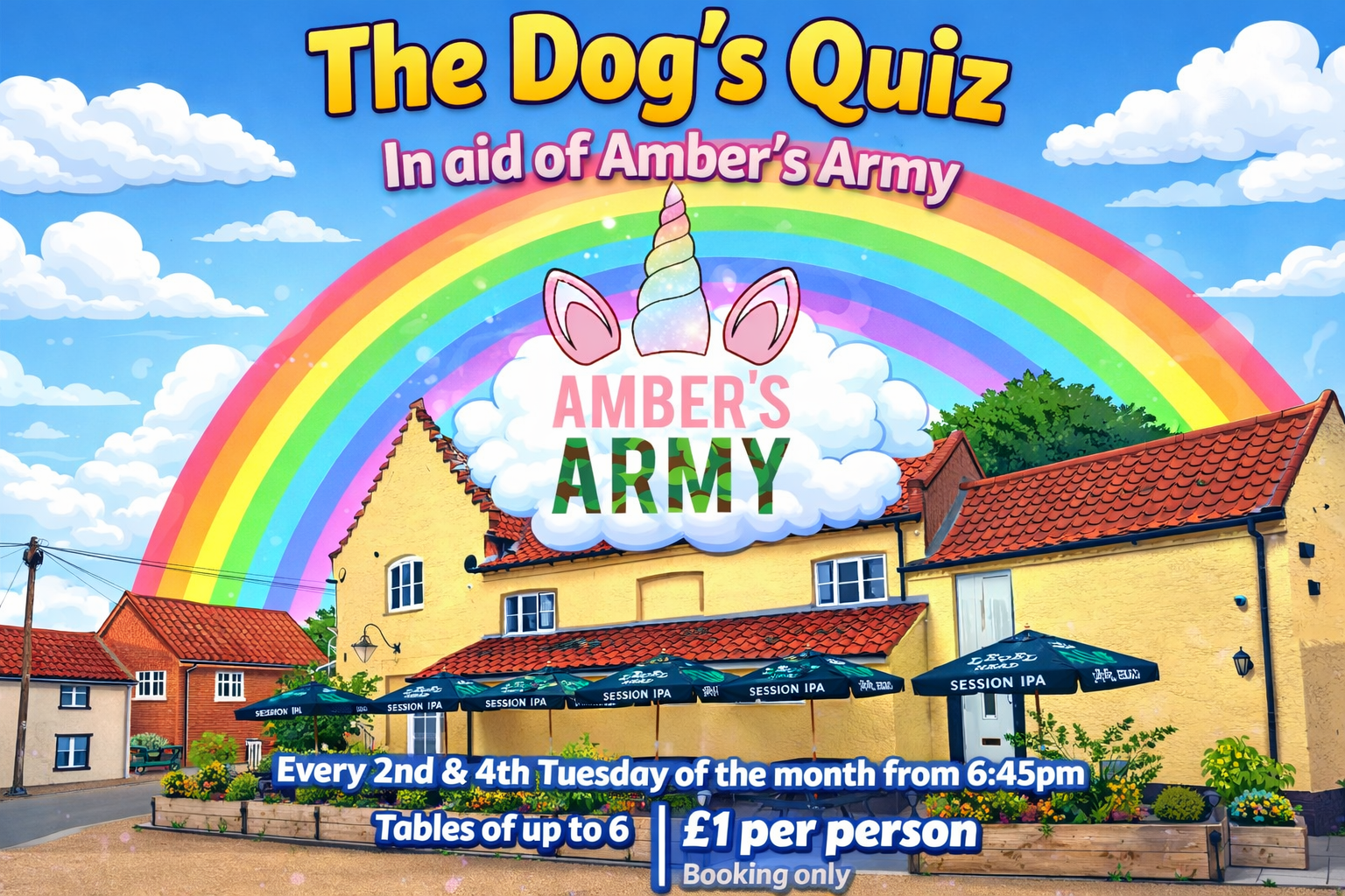 Our charity quiz night is held on the 2nd and 4th Tuesday of each month in aid of Amber’s Army, A local charity very close to our hearts in Horsford
